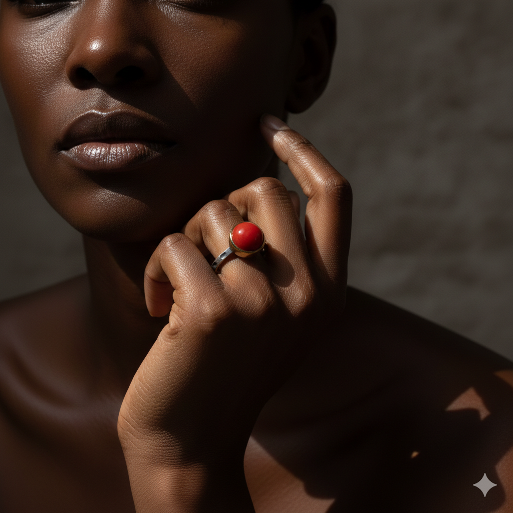 טבעת משובצת באבן קורל אדום זו, היא תכשיט מדהים וייחודי המשדר חום ועוצמה. הקורל האדום, שנמצא במעמקי הים, הוא למעשה מאובן אלמוג ונחשב לאבן חן מיוחדת במינה בזכות הצבע האדום העז והטקסטורה המיוחדת שלו.