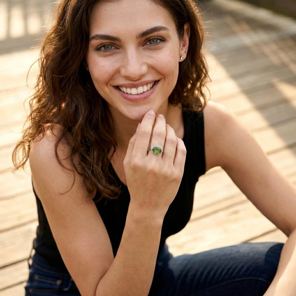 הטורמלין הירוק משדר תחושת רוגע ושפע, ומזוהה עם חיזוק החוסן הפנימי והחיבור בין הגוף לנפש. תוספת של האבן המרהיבה הזו יוצרת טבעת שמשדרת עוצמה פנימית, יחד עם יופי אלגנטי ומרשים.