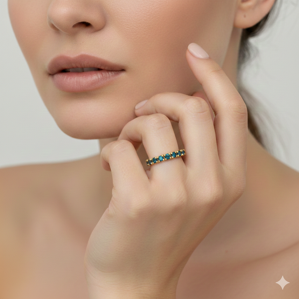 הספירים הכחולים, סמל לאמת ונאמנות, מעניקים לטבעת ערך רגשי נוסף ומסמלים קשר חזק ובלתי נשבר.